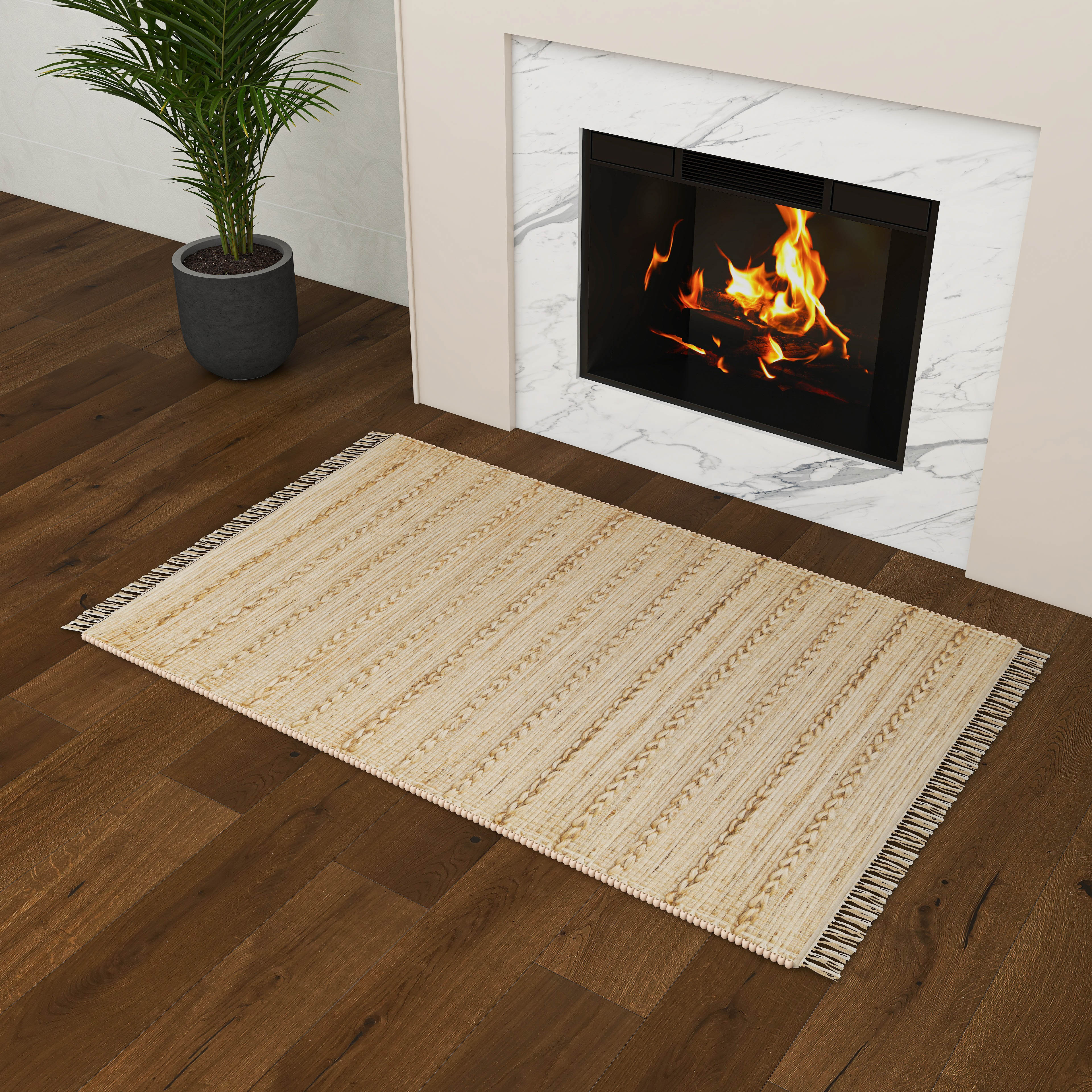 Natural 3x5 Handwoven Geometric Jute Rug – Low-Pile Tan Accent Carpet for Entryway, Kitchen, Bedroom, and Bathroom – Premium Home Décor