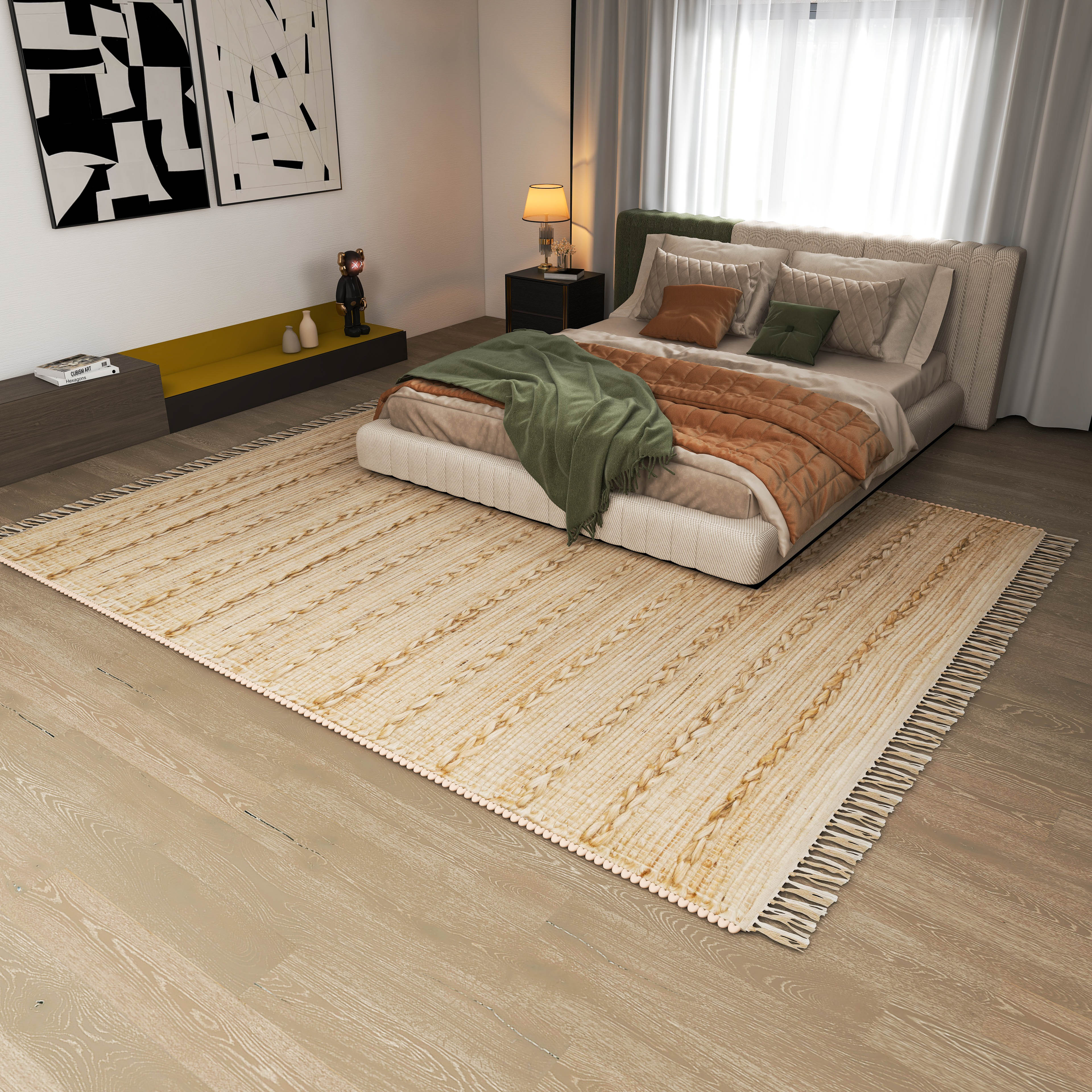 Rustic Jute Area Rug, 9'x12' Natural Braided Beige Bohemian Farmhouse Style Carpet – 0.5-Inch Thick Handwoven Design for Bedroom and Living Room Décor