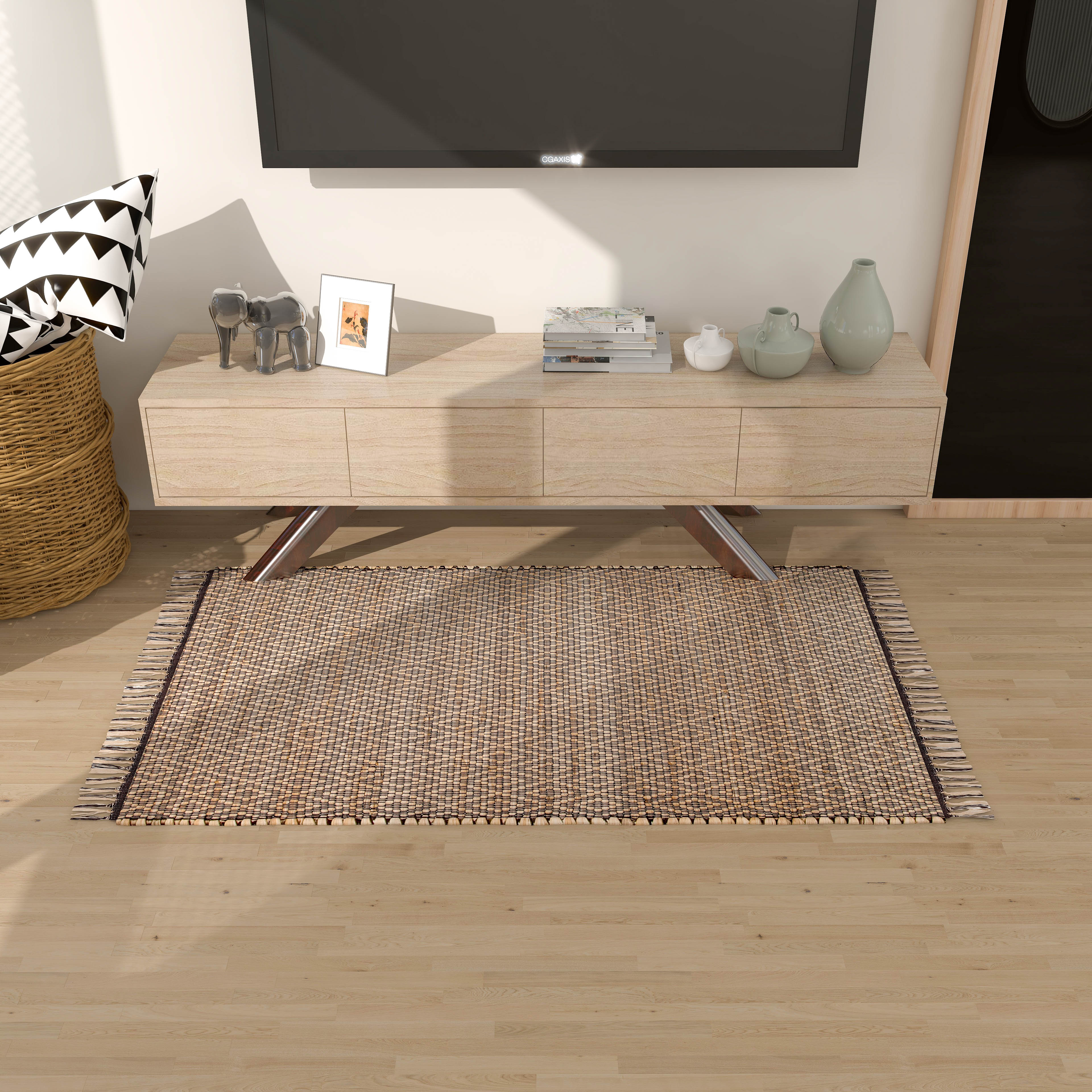 Beige Handwoven Geometric Jute Rug, 8'x10' Rustic Checkered Farmhouse Braided Carpet – 0.5-Inch Thick for Living Room, Bedroom, Kitchen, and Décor