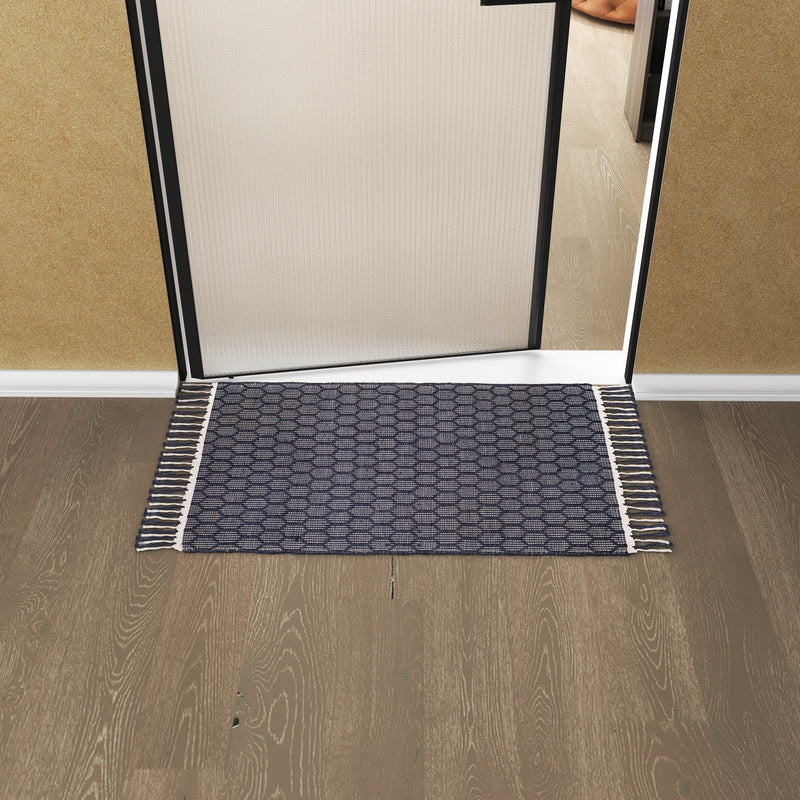 Farmhouse Cotton Rug, 2'x3' Black Handwoven Geometric Entryway Mat, Washable Kitchen Runner, Bathroom Carpet, Front Door Accent Rug Décor