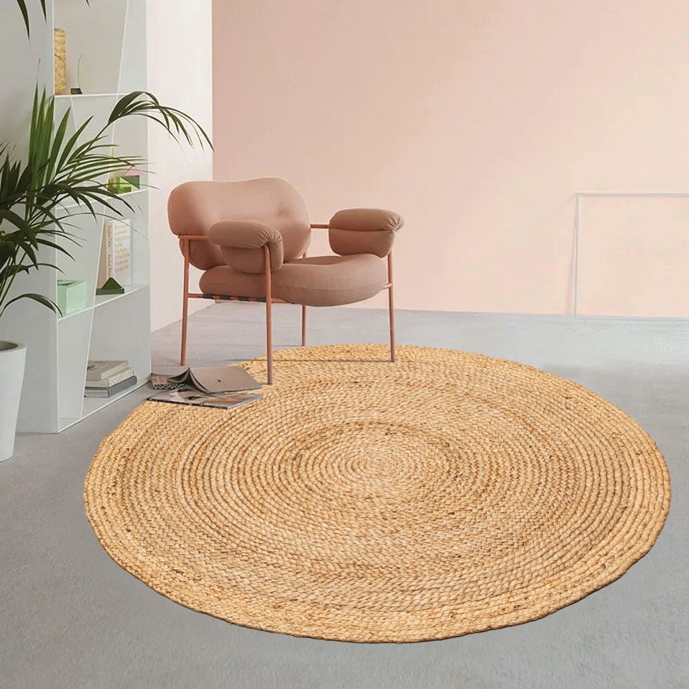 Natural Round Jute Rug, 6' – Handwoven Solid Tan Boho Farmhouse Carpet for Living Room, Bedroom, Dining Room, Kitchen, Entryway, and Office Décor